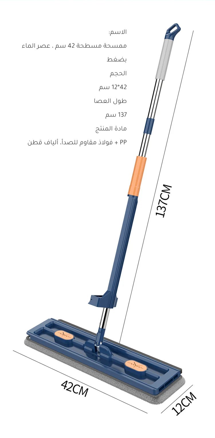 ممسحة مسطحة كبيرة الحجم، عصر الماء بضغط(إهداء قطعتين من المنشفة)
