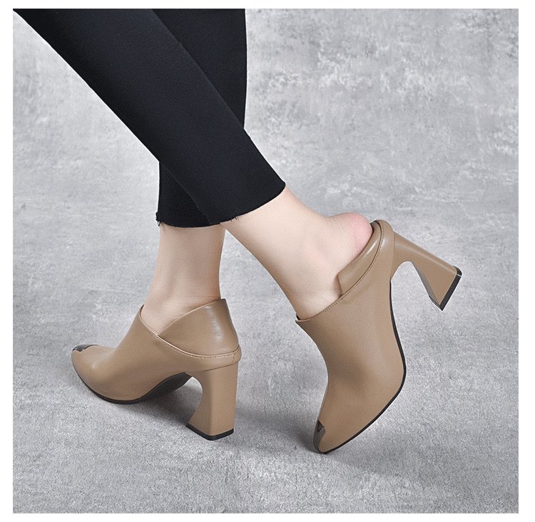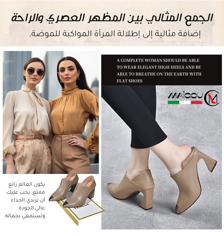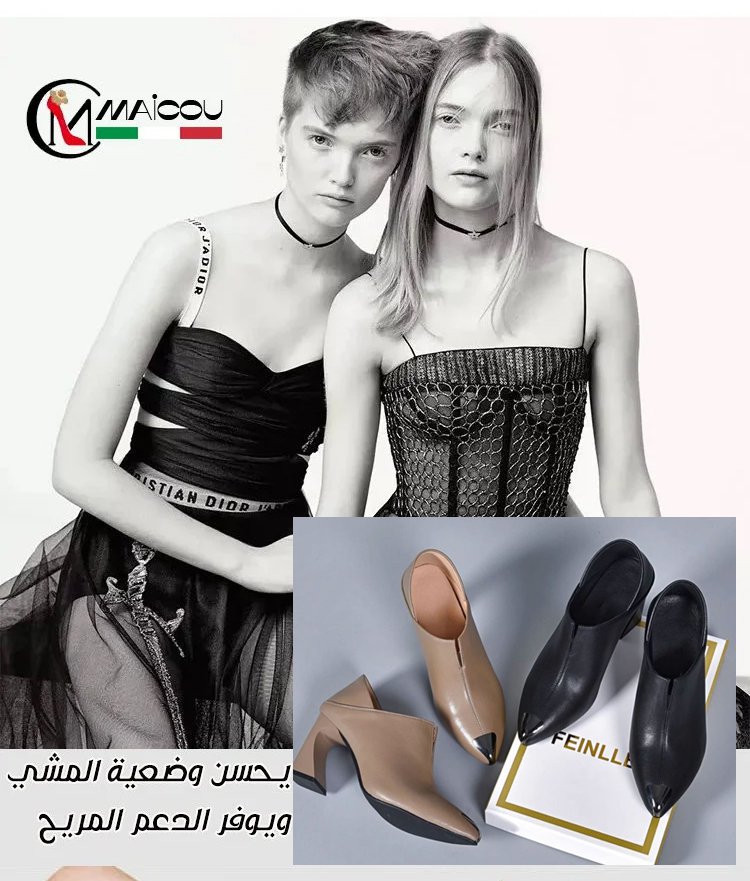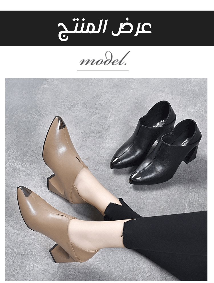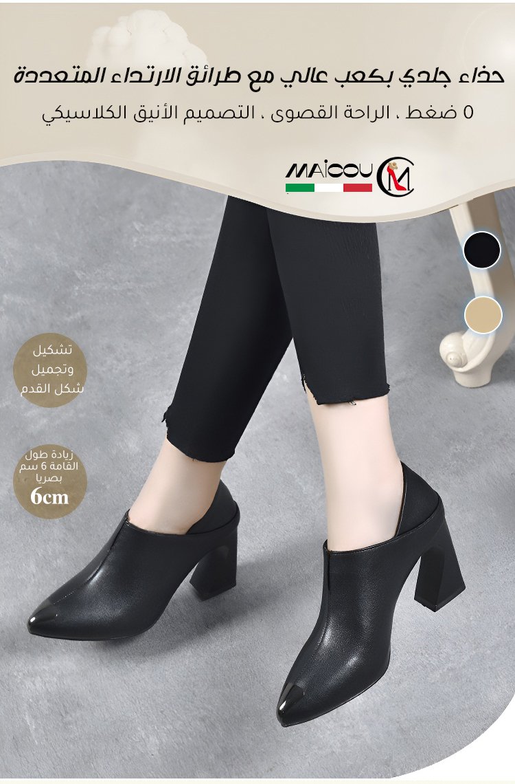 حذاء جلدي راقي بكعب عالي ومقدمة الحذاء المدببة مع طرائق الارتداء المتعددة